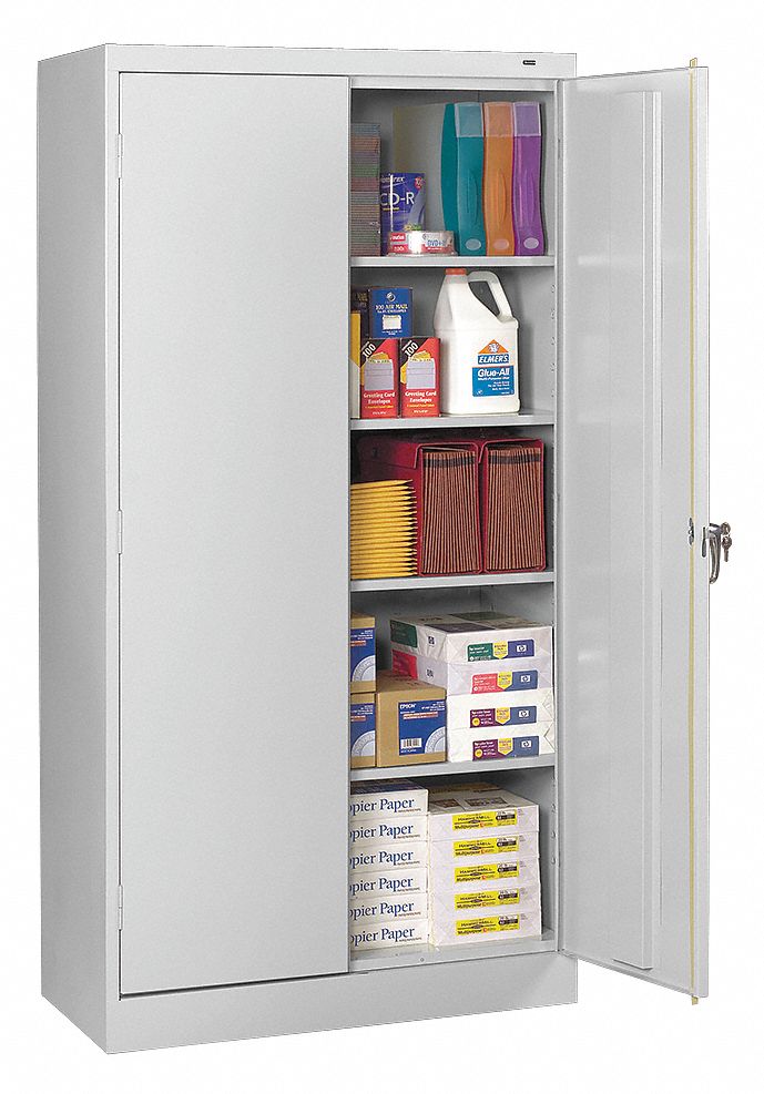 Tennsco s standard storage cabinets offer a quality construction three point door locking mechanism raised base and built in shelf support tabs.