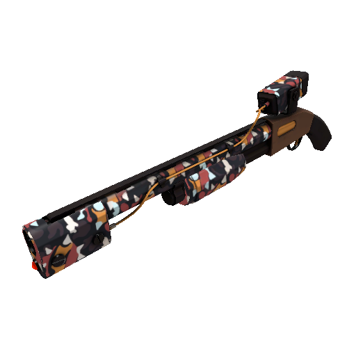 The quickiebomb launcher is a community created secondary weapon for the demoman it is a black sleek stickybomb launcher with a wooden foregrip and stock and a belt wrapped around the drum shaped magazine.